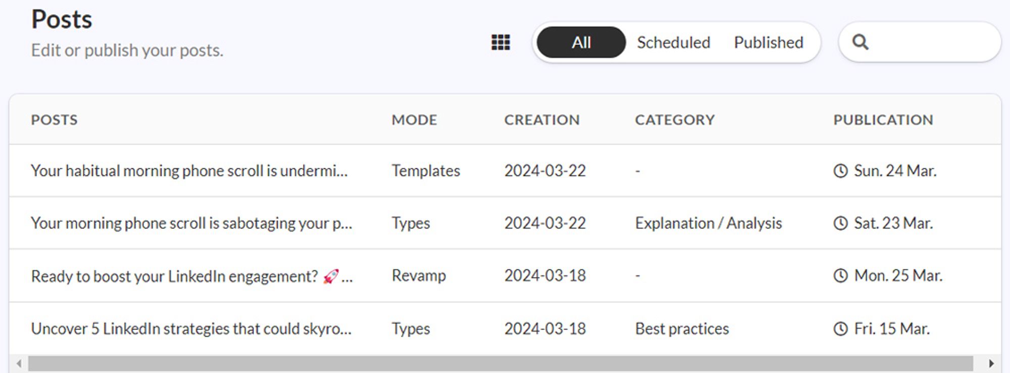 Because it leverages Chat GPT-4, you can create your new post in any language. You can save the ideas for later use or generate a new LinkedIn post.