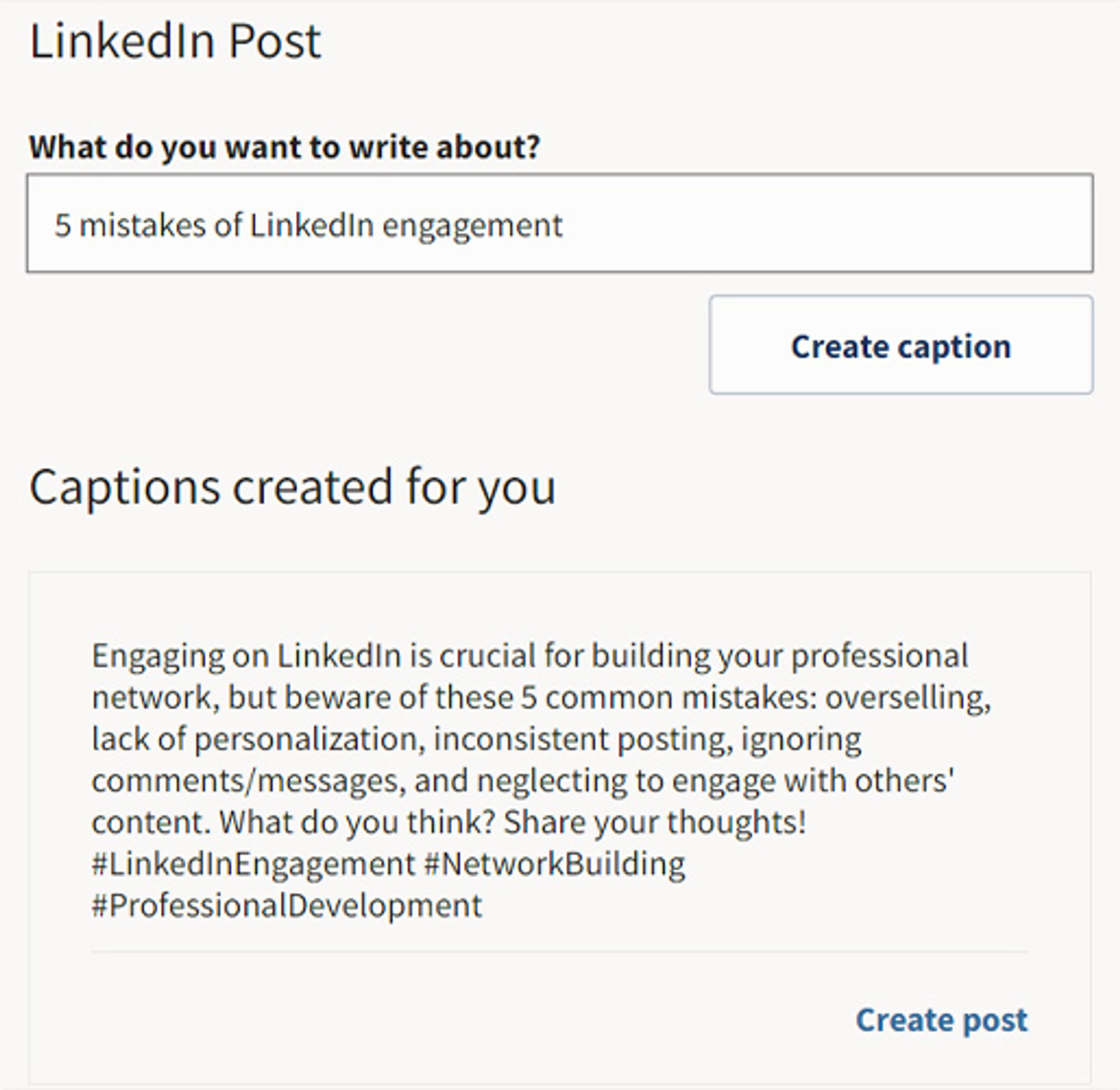 Hootsuite can give you a list of ideas based on a topic. Choose one to create a post about, and Hootsuite will write it for you.