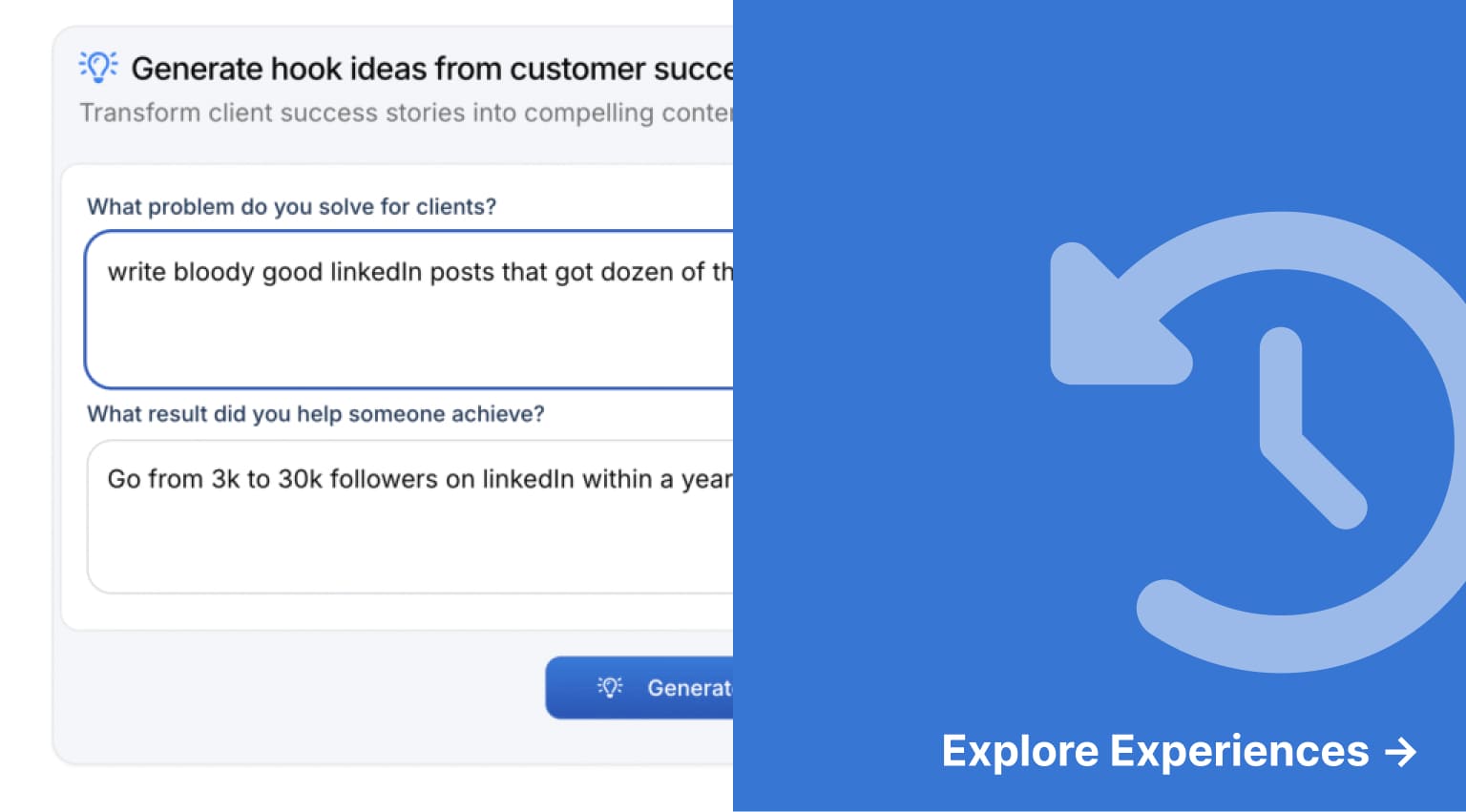 Not sure how to frame these stories clearly? Don’t worry. This guide gives you a straightforward process to turn everyday experiences into compelling LinkedIn posts effortlessly. And if you’re still stuck, there’s a mini-tool ready to help you craft engaging hooks instantly.