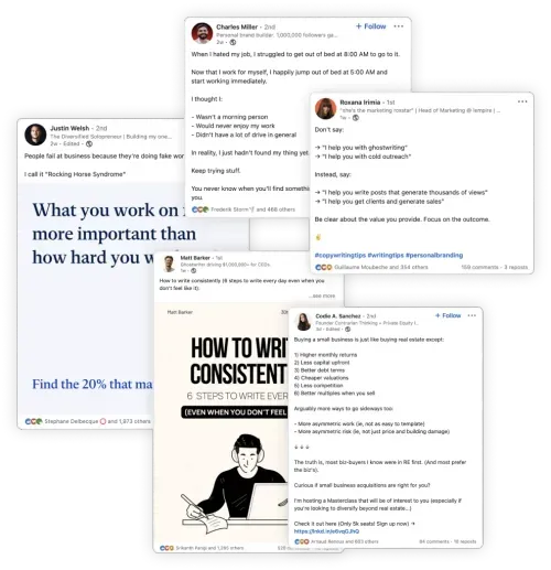 - Get post ideas and generate high-performing posts from scratch using AI