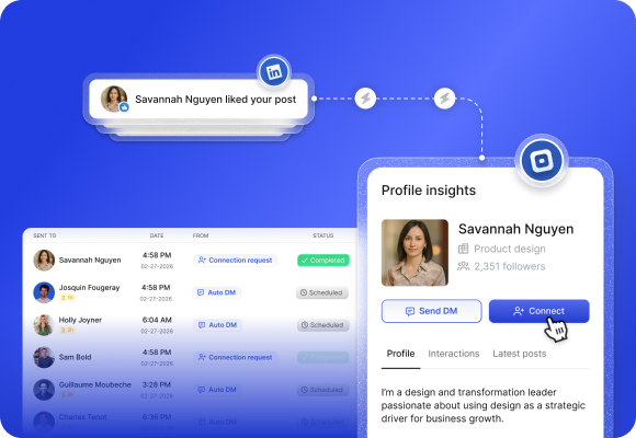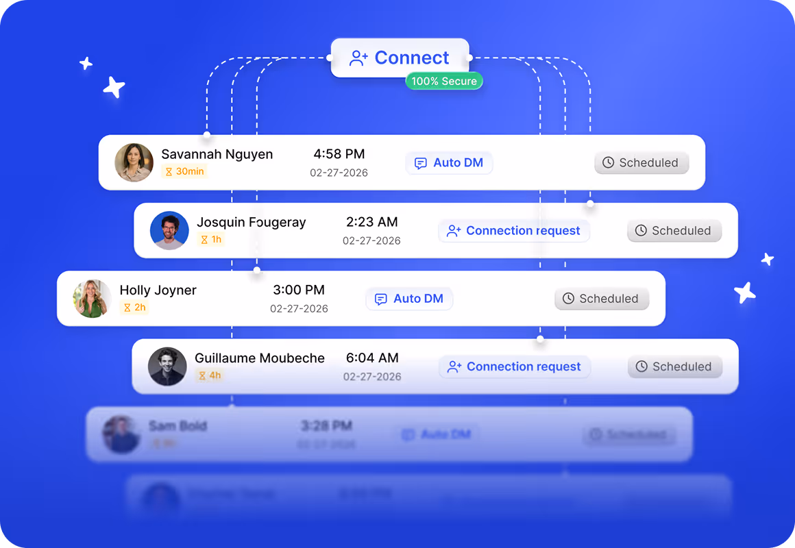 You publish a post about LinkedIn growth tips. It gets 200 likes. Among those likes: founders, marketers, and decision-makers who resonate with your ideas. With Connection Requests, you click through the likers, open the side panel, and send personalized requests, one by one, at your pace. The Intent Orchestrator spaces them out over hours. By tomorrow morning, you have 50 pending requests from people who already know your name.