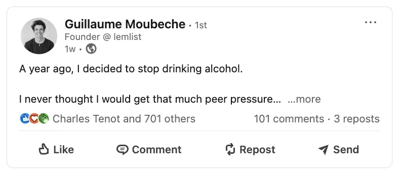 - Example: “Going viral on Linkedin can be worth millions. Most people think it’s luck.” (source: Adam Robinson)