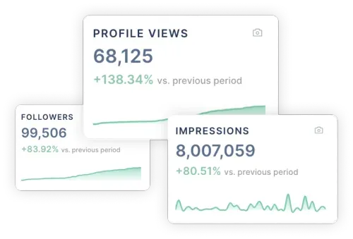 - Track views, followers, and engagement growth per client or per team member