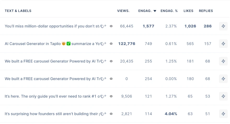 Taplio keeps a record of the performance of all your posts so you can easily know what you should be doubling down on.